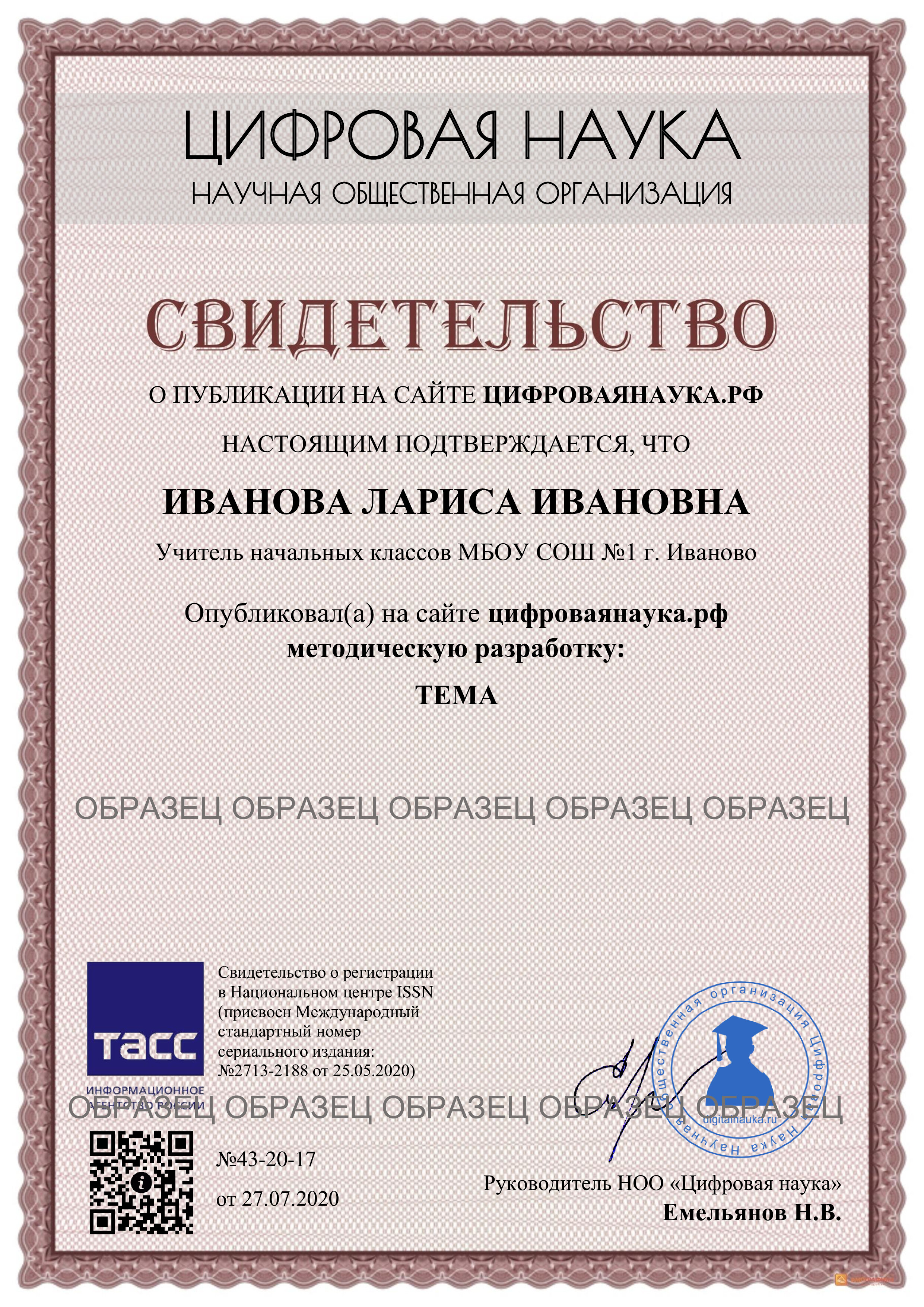 Опубликуйте Вашу разработку и получите свидетельство о публикации