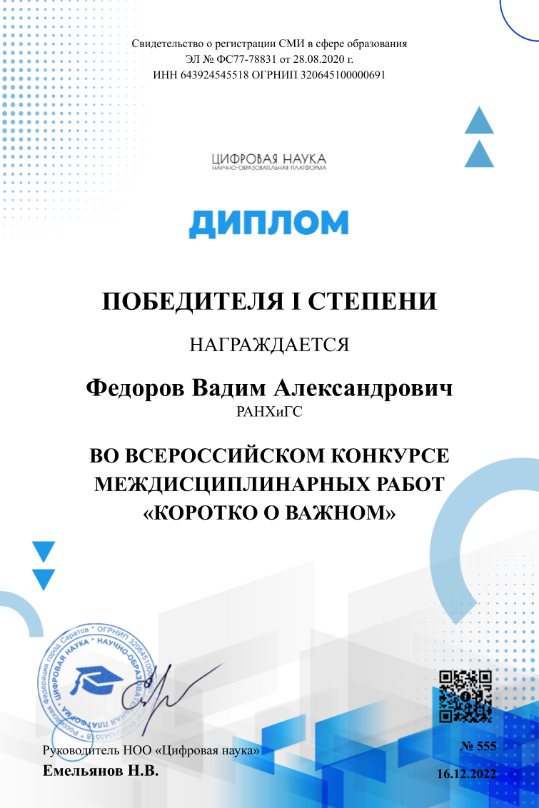 Научно-образовательная платформа «Цифровая наука» объявляет о проведении в 2023 году Всероссийского конкурса междисциплинарных работ «Коротко о важном» в номинациях:
