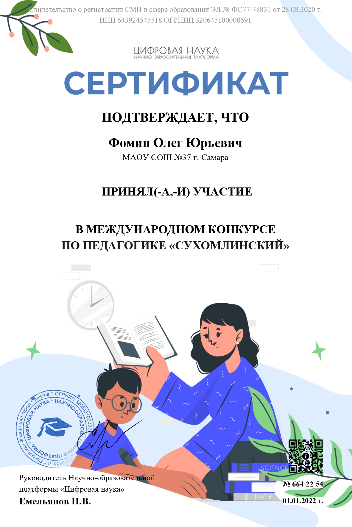 Сведения о регистрации СМИ Эл № ФС 77 - 78831 от 28.08.2020